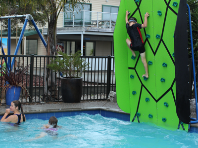 Pool climbing wall – Motueka Top 10 Holiday Park.