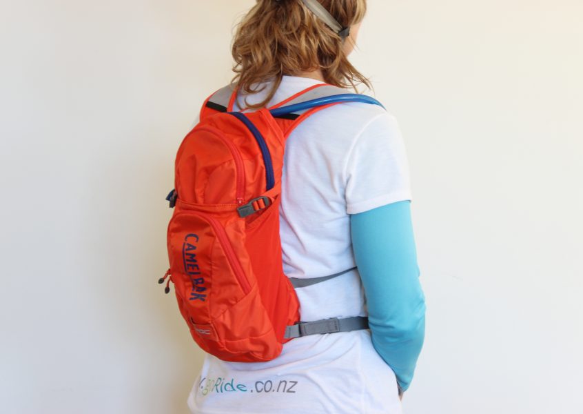 A pack this size will often come with a hydration resevoir of 2 – 3 litres. Enough to allow you to ride 2 plus hours. This sized pack is still small and lightweight but gives you flexibility for longer duration rides, if the weather is unpredictable or if you are responsible for others. Here is an example of what you can carry – hydration reservoir/bladder, cycling jacket and items for warmth, tool kit-with pump and tube , phone and credit cards/cash and a snack, first aid kit. If you choose to carry some of those items on the bike eg. hydration and/or tool kit or pump then you can replace with another similar sized item e.g. additional clothing items for the kids. [/one-half]