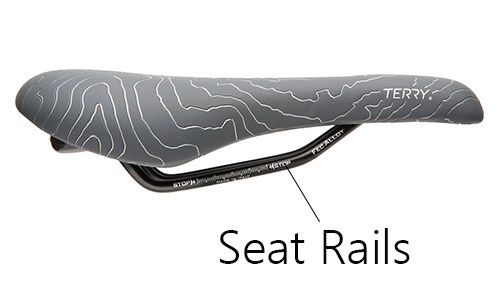 Seat rails run along underneath the seat and are the part that attaches the seat to the bike via the seat post. Where the rails are attached to the bike can be adjusted so you can alter your reach to the handlebars and the tilt of the seat.  See How to Attach a Bike Saddle. Rails can be made from a variety of elements – steel, aluminium, carbon, titanium, or manganese.