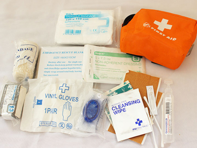 It’s a good idea to start with a first aid kit designed for outdoor use. Choose the size you think you need – compact or large – then if needed add to it what you think would be helpful. Be prepared for sprains/breaks, grazes/wounds/bleeding, minor injury, hypothermia, seat discomfort…