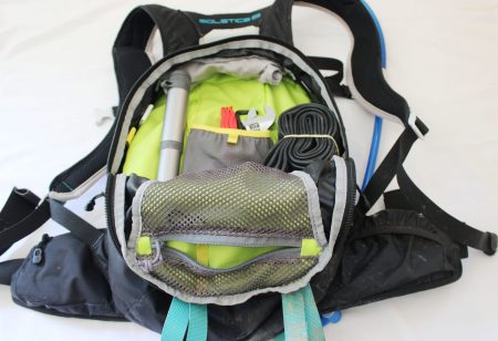 Primarily used for carrying water these packs can come in a range of sizes and styles. Some include specific places for bike tools, if not use a bike tool wrap or bag to keep your tools together.  When carrying any type of weight on your back try to keep it low down.  Water & tools combined will be the 2 heaviest things you could put on your back so if you’re choosing to do this don’t overload and keep the distances biked manageable.