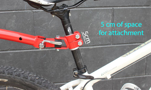 1. You require at least 5 cm of exposed space on your seat post. If you do not have space – you can alter your seat height to create enough space. Note this will raise your seat height (remember you still need to be able to pedal comfortably).