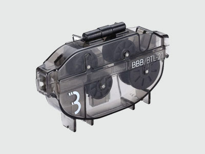Has an extra large solvent reservoir and a series of rotating brushes to get chains really clean