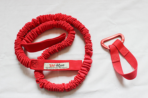 Is made by Tow Whee who are based in the US. This is the original tow rope invented by Eric Landis who created the company Tow Whee. "It all started when... I needed to get my kids to the top of the hill. Tying a simple rope or strap to help tow them up always ended up dangling into the wheels or jerking & causing problems. By adding a high quality bungee inside a climbing rope I found the solution!"