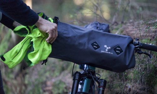 Solution for… keeping gear dry while riding on back country trails over multiple days. A 10L waterproof bag with double side access that attaches to your handlebars. Have your essentials securely stored and dry.