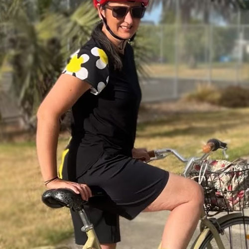 Solution for… a stylish NZ made top with a bright rear stripe and sleeve pattern to help you to be seen on the bike. The Live Bike Tee is a flattering lightweight style with good length & coverage and a slight flare over the hips.
