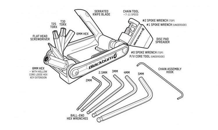 - 19 functions, Blackburn have gone out of their way to pack this tool with as many useful functions as humanly possible. The selection, length and placement of each tool has been carefully thought out so that you have the right tool and can easily use it.