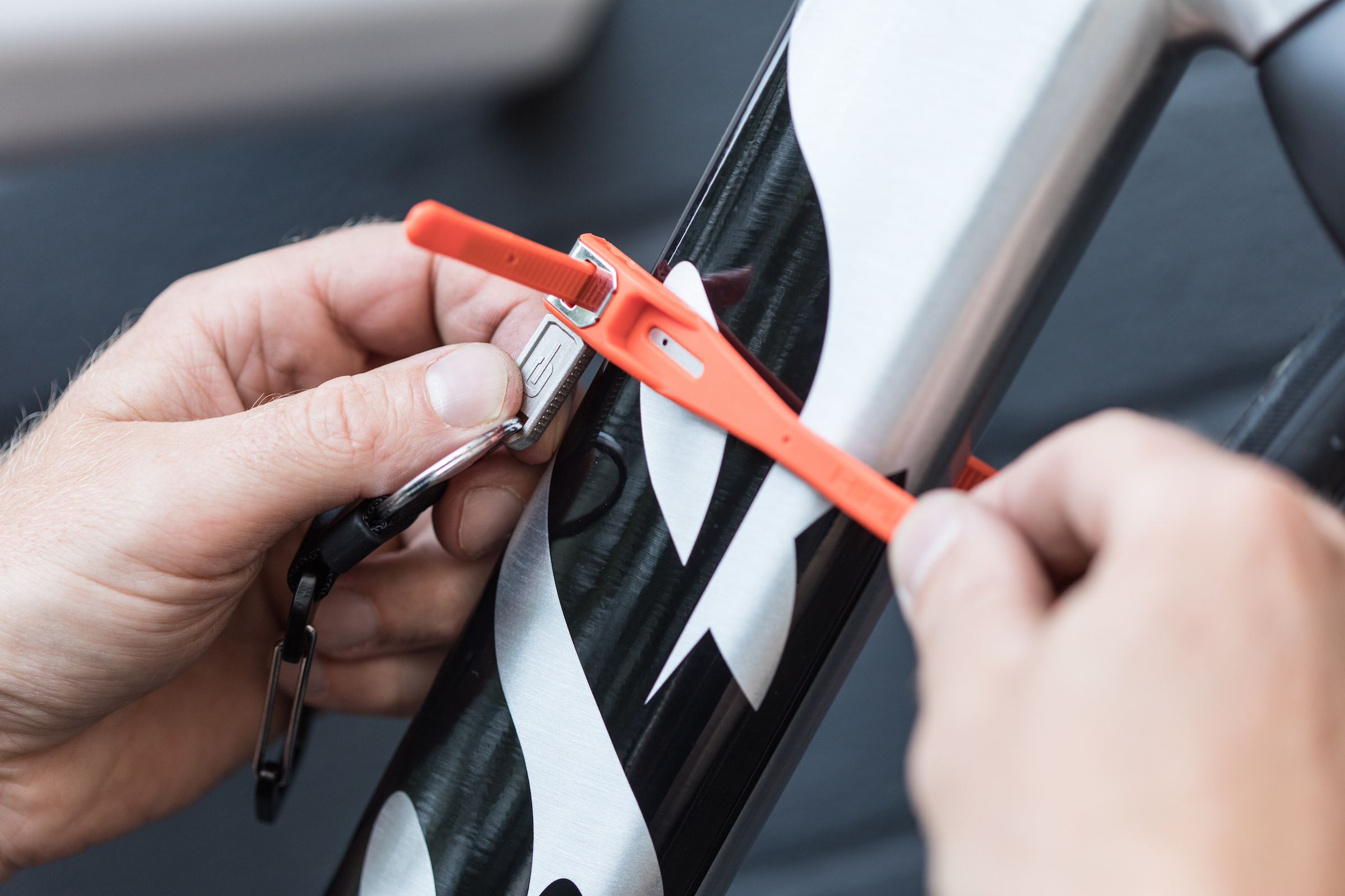 Solution for… the protection you need to confidently leave your bike or sports gear wherever you choose. A unique offering that will give you flexibility of use and peace of mind when your gear is unattended. So many applications with these reusable reinforced steel core cable ties. It is thought that 85% of theft is opportunistic so protect your gear with this simple, easy to use security tie