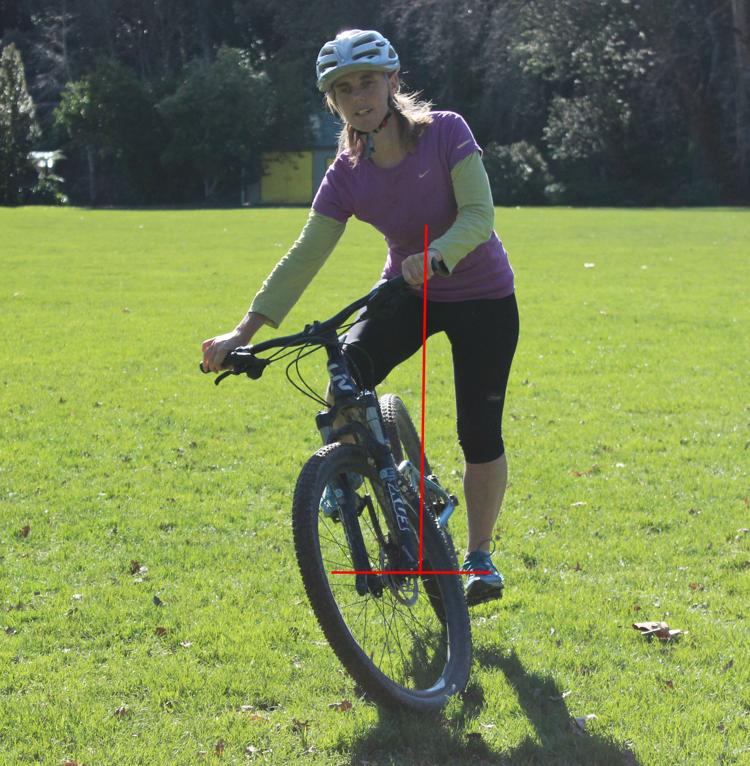 - In biking, our bike pedals (and the area between them) = our base of support, so we have to keep of centre of mass over this pedal area.. Therefore when we lean our bike we need to alter the position of our centre of mass to match the base of support – to keep balance. Ladies we need to get our hips on the move here – move your hips out and away from the bike seat to bring your centre of mass over the base.