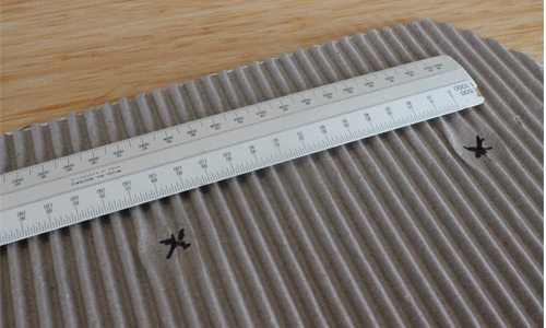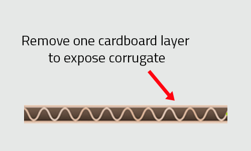Take a piece of card that has a corrugate layer exposed. This type of card is often used for packaging. The corrugate must not be squashed or damaged. If you don’t have a piece you can get a thick piece of cardboard and pull off one layer to expose the corrugate.