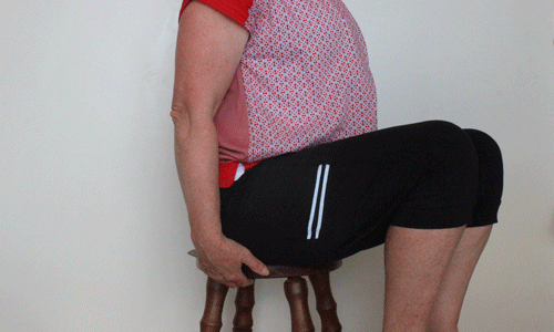If you have a lot of soft tissue in this area, with your hands you can pull the soft tissue to the side as you sit down to help expose the sit bones.