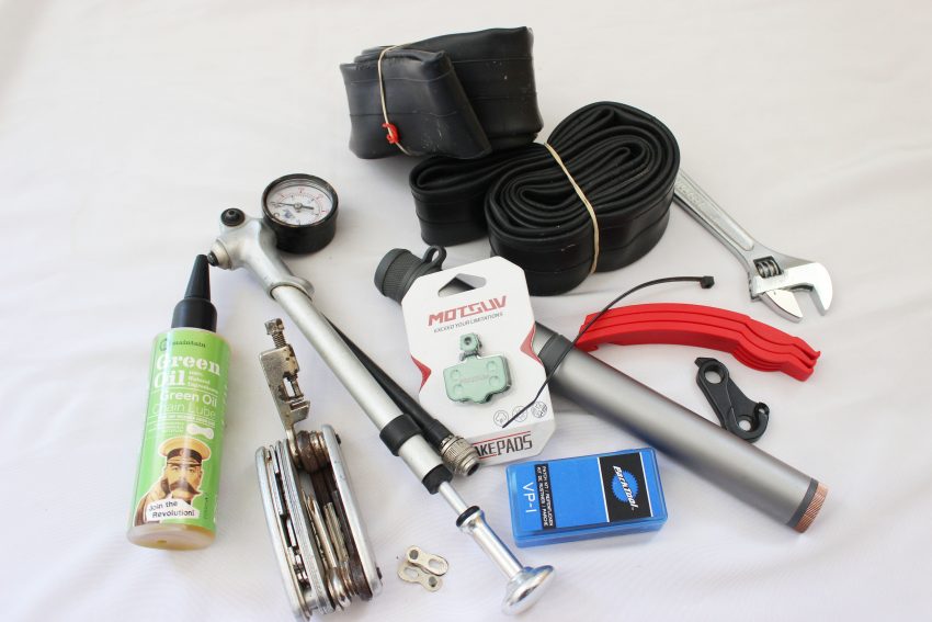 [vc_row][vc_column][vc_row_inner][vc_column_inner width=”2/3″][themeone_spacer height=”41px”][vc_column_text]What would you put in a multi-day mountain biking tool kit? Â Do you have the right kind of bike tools to take with you on a multi-day adventure? Â When the riding experience is spread out over several days and has an element of isolation about it….YOU need to be better prepared. Â Mountain biking trails are generally pretty rugged and are more likely to do damage to your bike than any other type of riding. You therefore need to be ready to fix problems like puncturing, chain breaks and derailleur damage – which if you’re unlucky could happen more than once. Â You may also have to deal with accessories you have added to your bike set up so you can carry gear with you. Â Bike carriers may need tightening, seat post bags securing or handlebar bags repositioning…do you have the tools?